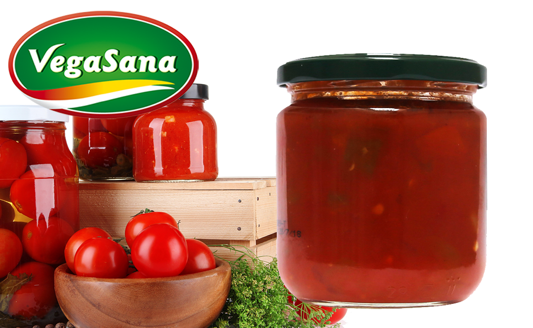 A VegaSana siamo produttori di pomodori fritti con peperoni verdi arrostiti